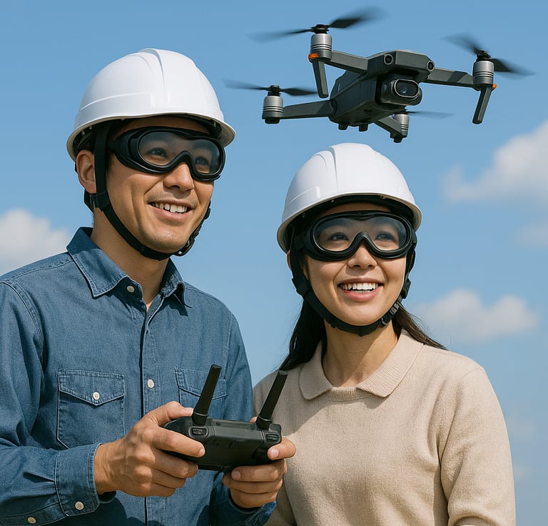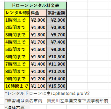 ドローンのレンタルと河川敷での練習ができます。経験不要です。