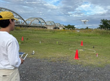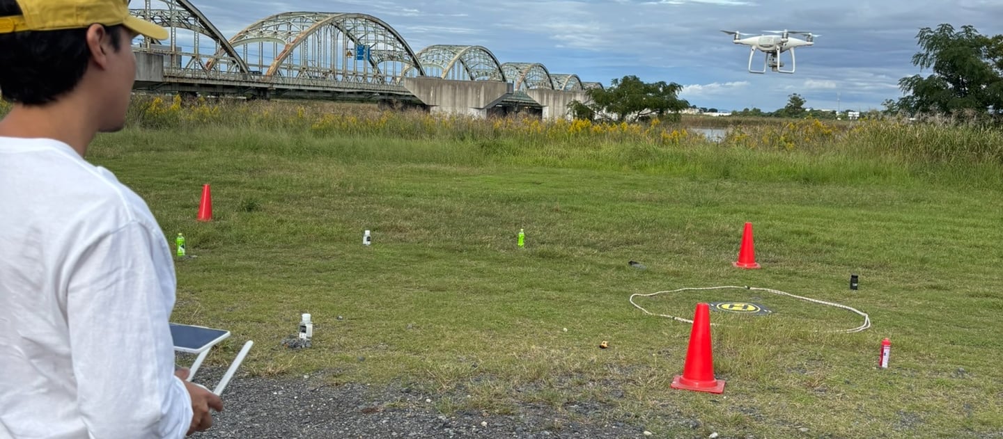 ドローンのレンタルと河川敷での練習ができます。経験不要です。